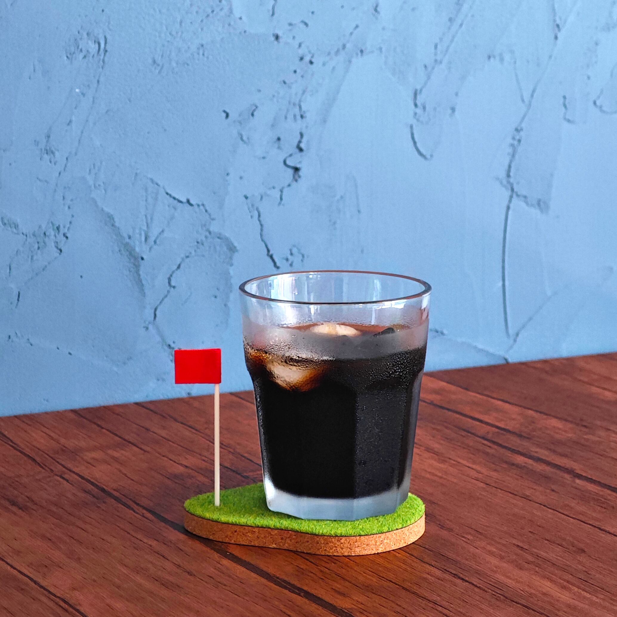 付属のピンフラッグを立てることで、リアルなグリーンを感じることができる遊び心のあるコースターです。見ているだけでゴルフに行きたくなってしまいそう。